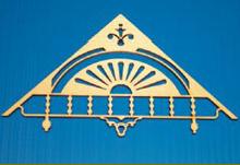 These delicately detailed trims are produced by state of the art laser technology. They are easy to install and require very little extra preparation. Adjustable trims, pictured below, can be used in apexes with wide or narrow angles. Detailed porch trims can also be used as corbel brackets or accents for crown molding. All of these pieces are made from 3/32" basswood and proudly made in the USA.
